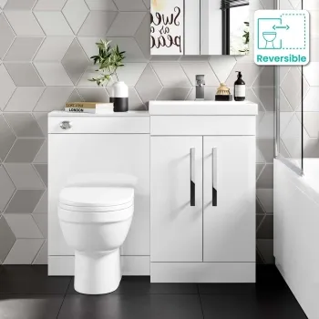 Create a streamlined, elegant bathroom with our range of combined vanity & toilets. Designed for maximum impact in minimal space, our units integrate basin, storage, and toilet into one cohesive solution — perfect for cloakrooms, en-suites, and compact bathrooms. Explore our range of bathroom furniture at Bathroom Mountain, offering elegant solutions designed for comfort and durability.