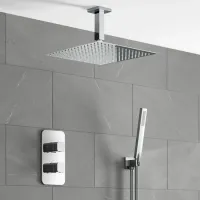 Galway Premium Ceiling Chrome Square Thermostatic Shower Set - 300mm Head & Hand Shower