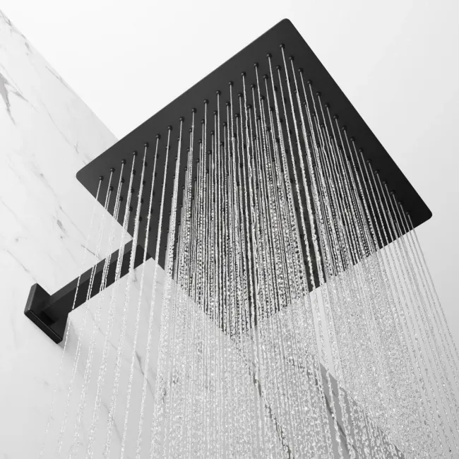 Galway Premium Matt Black Square Thermostatic Set - 300mm Head, Hand Shower & Body Jets