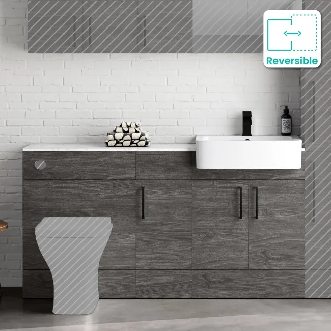 Harper Charcoal Elm Combination Vanity Basin with Marble Top 1500mm - Black Accents