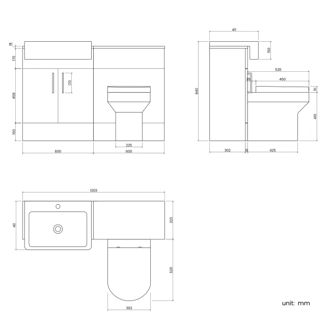 Harper Gloss White Combination Vanity Basin and Miami Toilet 1200mm