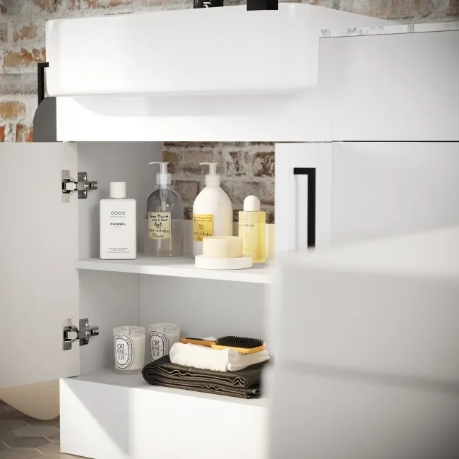 Harper Gloss White Combination Vanity Basin with Marble Top & Boston Toilet 1200mm - Black Accents