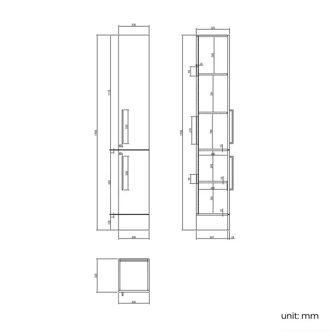 Harper Gloss White Floor Standing Tall Cabinet 1900x300mm - Brushed Brass Accents