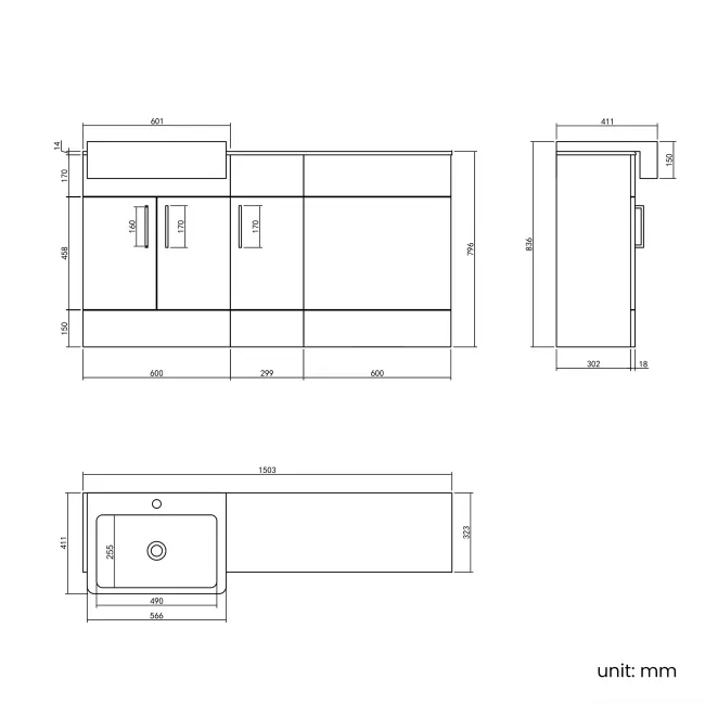 Harper Navy Blue Combination Vanity Basin with Marble Top 1500mm (Excludes Toilet) - Brushed Brass Accents