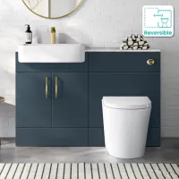 Harper Navy Blue Combination Vanity Basin with Marble Top & Boston Toilet 1200mm - Brushed Brass Accents