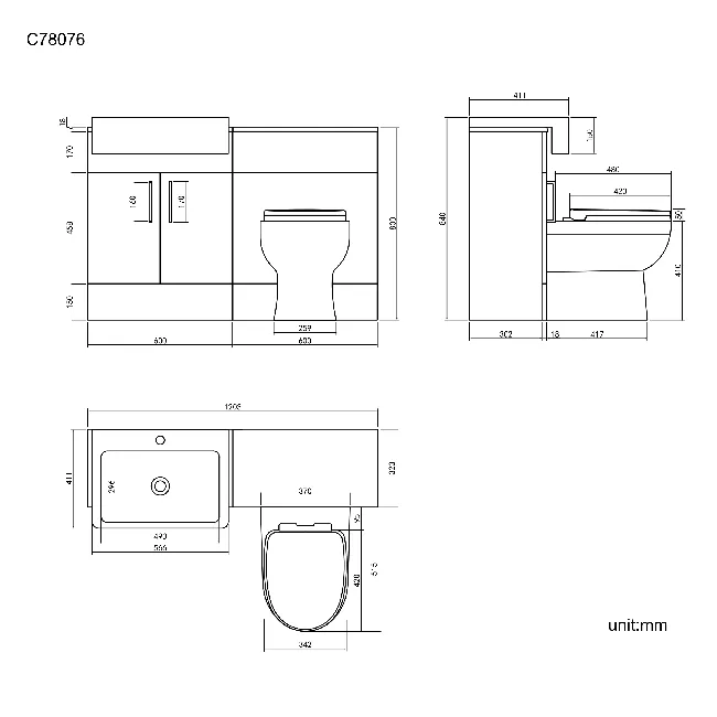 Harper Stone Grey Combination Vanity Basin and Aruba Toilet 1200mm - Black Accents