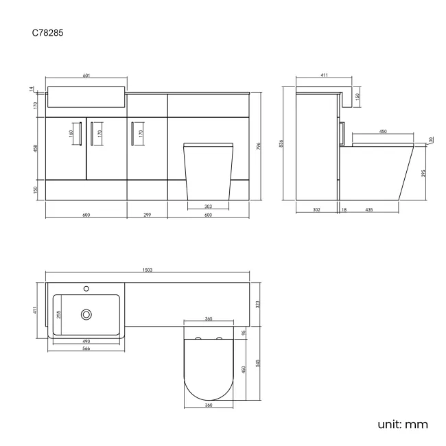 Harper Stone Grey Combination Vanity Basin with Marble Top & Boston Toilet 1500mm - Black Accents