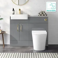 Harper Stone Grey Combination Vanity Basin with Marble Top & Tucson Toilet 1000mm - Brushed Brass Accents