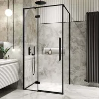 Helsinki Matt Black Premium Easy Clean 8mm Hinged Shower Enclosure 1100x900mm
