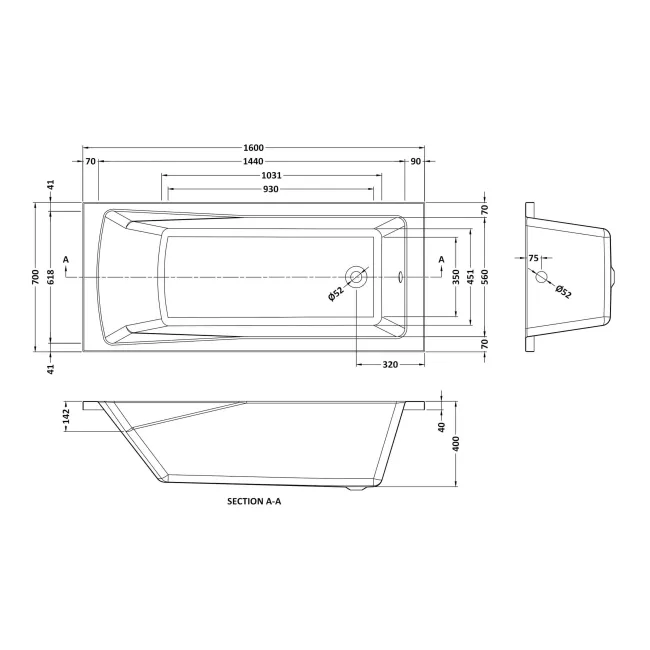 Hereford 1600x700 Square Shower Bath & 6mm Easy Clean Matt Black Grid Bath Screen