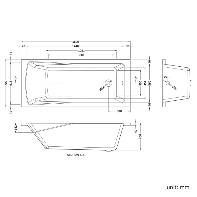 Hereford 1600x700 Square Shower Bath & 6mm Easy Clean Screen