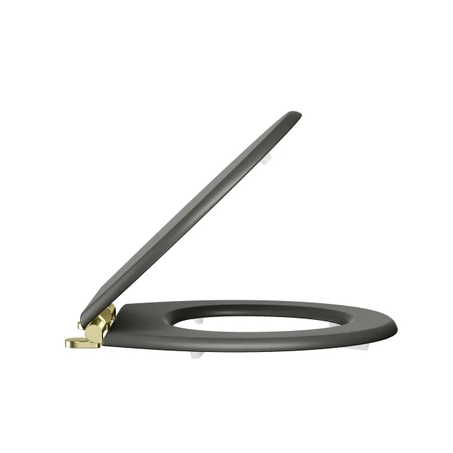 Hudson Traditional Graphite Grey Wooden Soft Close Seat with Brushed Brass Hinges