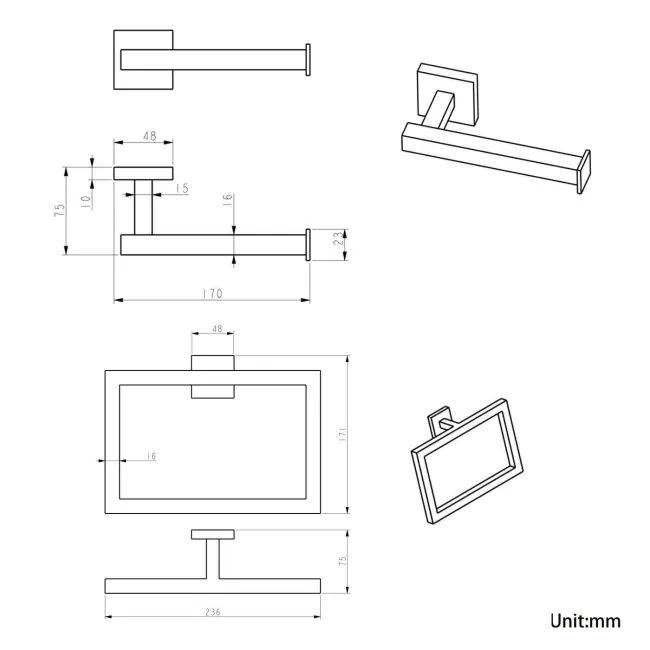 Isla Matt Black Toilet Roll Holder & Towel Ring