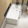 L Shaped 1600 Shower Bath with Front Panel & 6mm Matt Black Easy Clean Screen with Rail - Right Handed