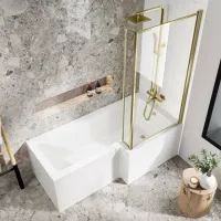 L Shaped 1700 Shower Bath & 6mm Easy Clean Brushed Brass Bath Screen - Right Handed