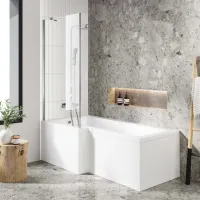 L Shaped 1700 Shower Bath with Front Panel & 4mm Fixed Screen - Left Handed