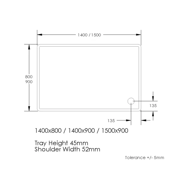 London Rectangular Stone Shower Tray 1500x900mm & Riser Kit