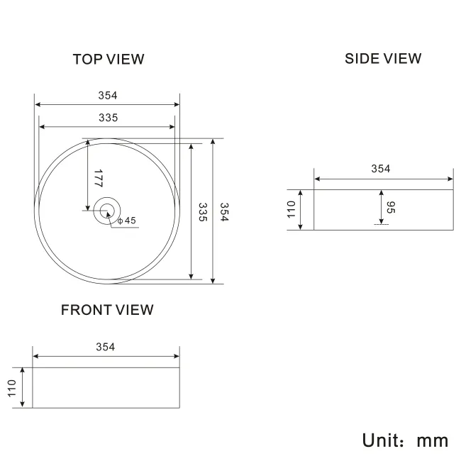Louisiana Matt Black Round Counter Top Basin 355mm