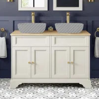 Lucia Chalk White Cabinet with Oak Effect Top 1200mm (Excludes Counter Top Basins) - Brushed Brass Accents