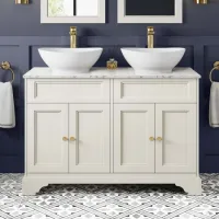 Lucia Chalk White Double Vanity with Marble Top & Oval Counter Top Basin 1200mm - Brushed Brass Accents