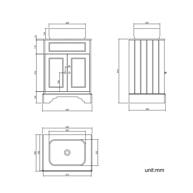 Lucia Chalk White Vanity with Marble Top & Curved Counter Top Basin 640mm - Brushed Brass Accents