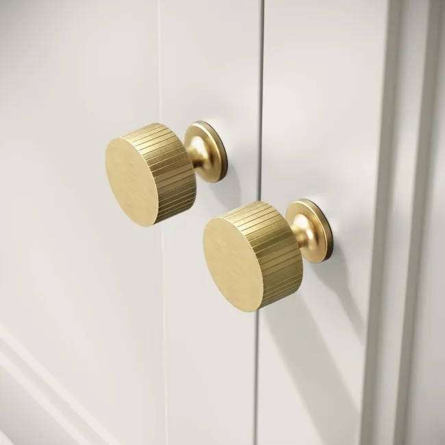 Lucia Chalk White Vanity with Marble Top & Round Counter Top Basin 1030mm - Brushed Brass Accents