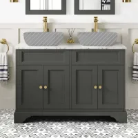 Lucia Graphite Grey Cabinet with Marble Top 1200mm (Excludes Counter Top Basins) - Brushed Brass Accents