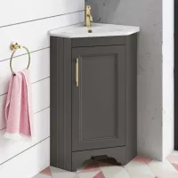 Lucia Graphite Grey Corner Basin Vanity 400mm - Brass Knurled Handle