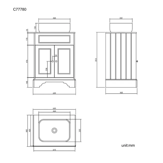 Lucia Graphite Grey Vanity with Marble Top & Curved Counter Top Basin 640mm