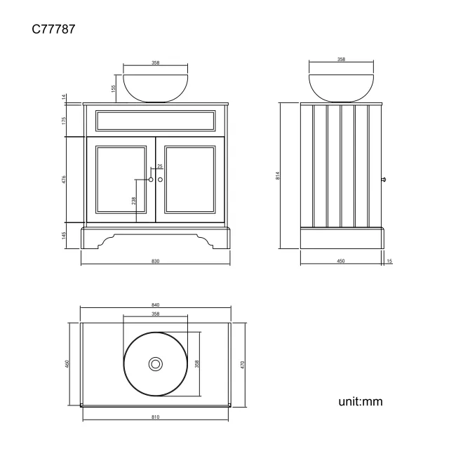 Lucia Graphite Grey Vanity with Marble Top & Round Counter Top Basin 840mm