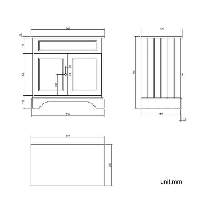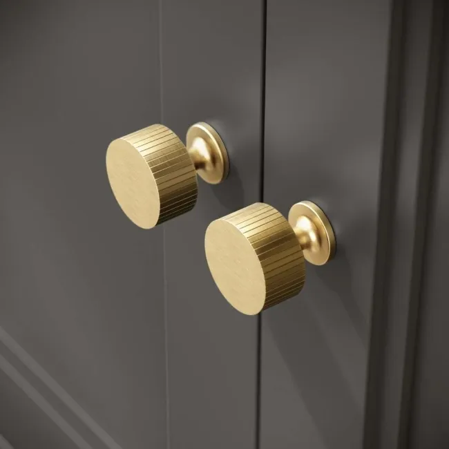 Lucia Graphite Grey Vanity with Oak Effect Top & Round Counter Top Basin 840mm - Brushed Brass Accents