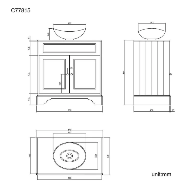 Lucia Inky Blue Vanity with Marble Top & Oval Counter Top Basin 840mm