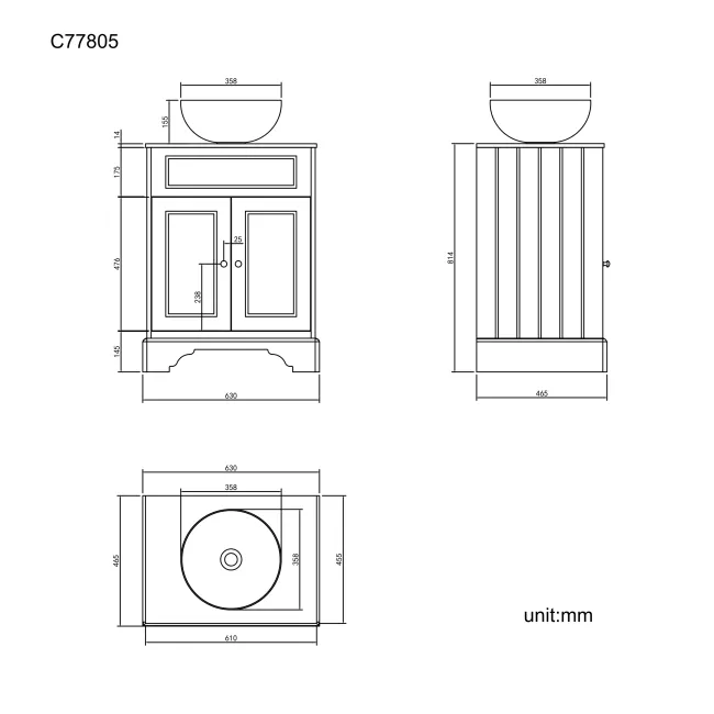 Lucia Inky Blue Vanity with Marble Top & Round Counter Top Basin 640mm
