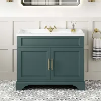 Lucia Midnight Green Basin Vanity 1030mm - Brass Knurled Handles