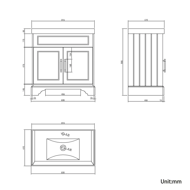 Lucia Midnight Green Basin Vanity 830mm - Brass Knurled Handles