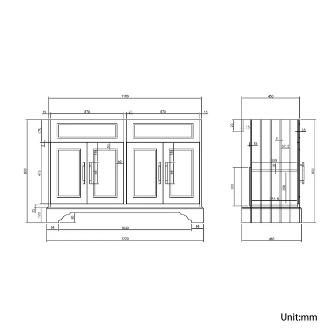 Lucia Midnight Green Double Vanity with Marble Top & Undermount Basins 1200mm - Brass Knurled Handles