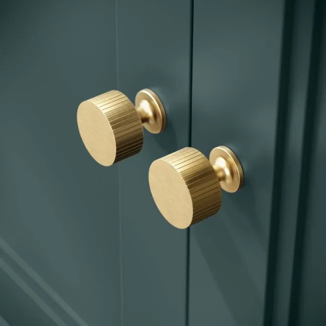 Lucia Midnight Green Vanity with Marble Top & Round Counter Top Basin 840mm - Brushed Brass Accents