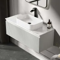 Malta Fluted Coastal White Wall Hung Drawer Vanity with Marble Top & Marin Basin 1000mm