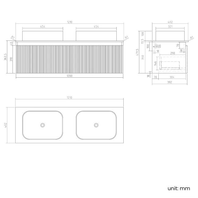 Malta Fluted Country Oak Double Wall Hung Drawer Vanity with Marble Top & Marin Basin 1200mm
