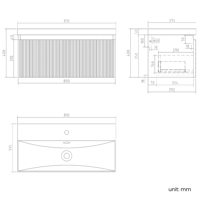 Malta Fluted Country Oak Wall Hung Basin Drawer Vanity 800mm