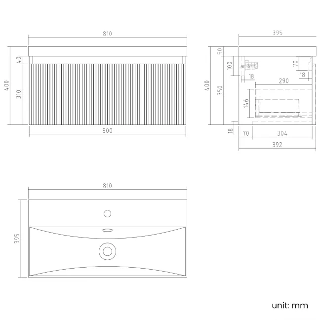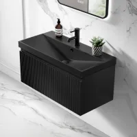 Malta Fluted Matt Black Wall Hung Drawer Vanity with Matt Black Basin 800mm