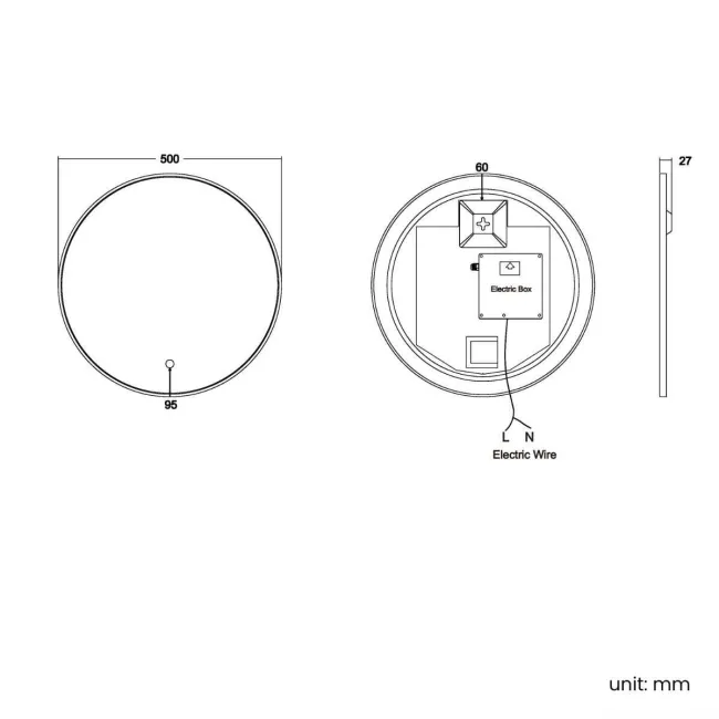 Mollie Black Framed Round Backlit llluminated LED Mirror 500mm