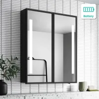 Mia Battery Operated Black Framed Illuminated LED Mirror Cabinet 710x600mm