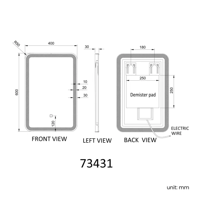 Mila Black Framed Illuminated LED Mirror 600x400mm