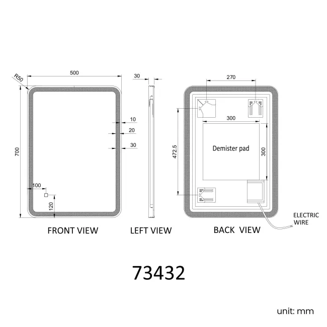 Mila Black Framed Illuminated LED Mirror 700x500mm