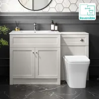 Milos Cotton White Combination Vanity Basin and Houston Toilet 1300mm - Chrome Handles