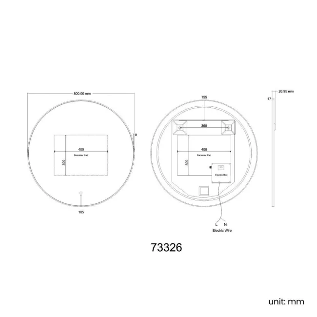 Aria Round Illuminated LED Mirror With BLUETOOTH Speaker 800mm