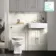 Monaco Chalk White Combination Vanity Basin and Hudson Toilet with Wooden Seat 1200mm - Brushed Brass Accents