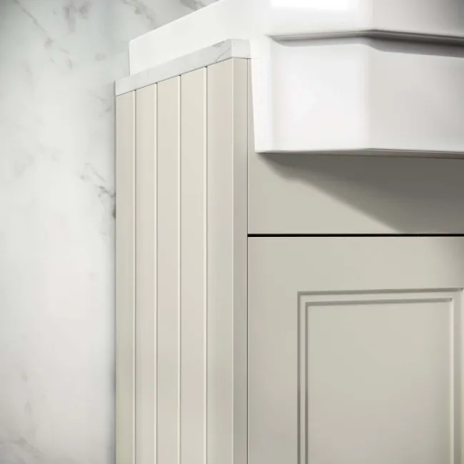 Monaco Chalk White Combination Vanity Traditional Basin with Marble Top & Hudson Toilet with Wooden Seat 1500mm - Brushed Brass Accents
