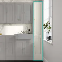 Monaco Chalk White Floor Standing Tall Cabinet Unit 300mm - Brushed Brass Accents